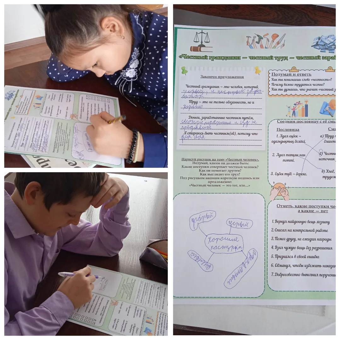 Оқушыларда адал еңбектің құндылығын лайықты өмір мен азаматтық жауапкершіліктің негізі ретінде түсінуді қалыптастыру; еңбек адамдарына құрмет көрсетуге, кез келген істе адал, әділ және адал болуға ұмтылуға тәрбиелеу.